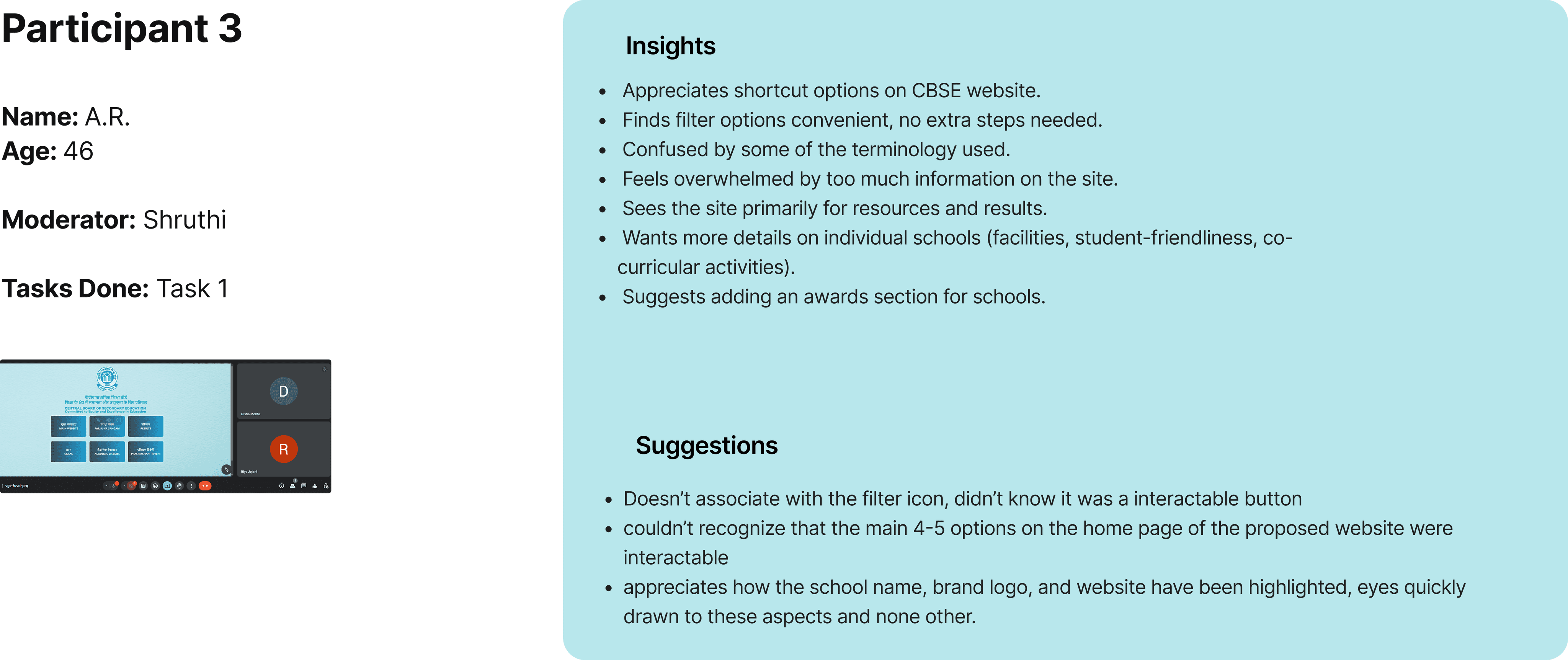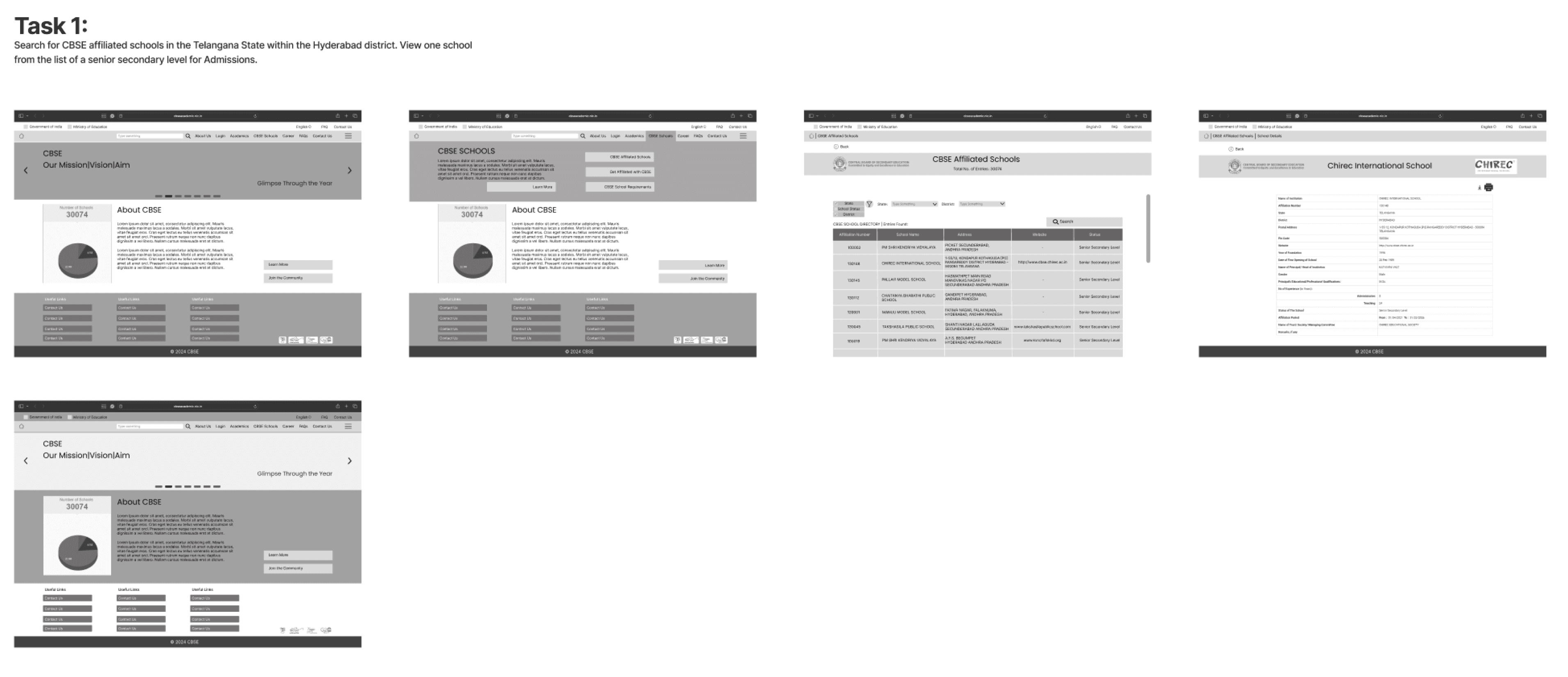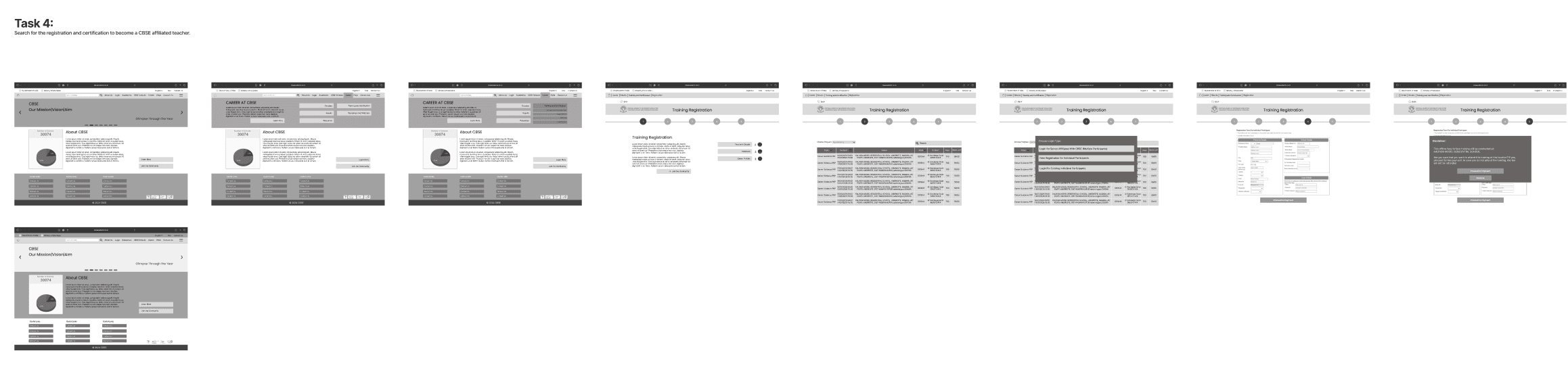First, we extensively looked through the CBSE website and narrowed down to 4 major existing flows that would be visited often by the users. Additionally, we also defined our user groups and made respective personas.