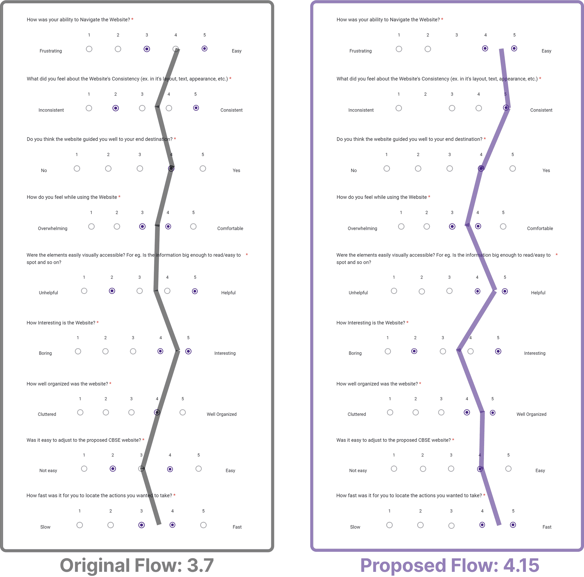 An SDS form was created to be sent to each participant after their interview was over. This form had questions about their experience interacting with the original CBSE website and our proposed concept.