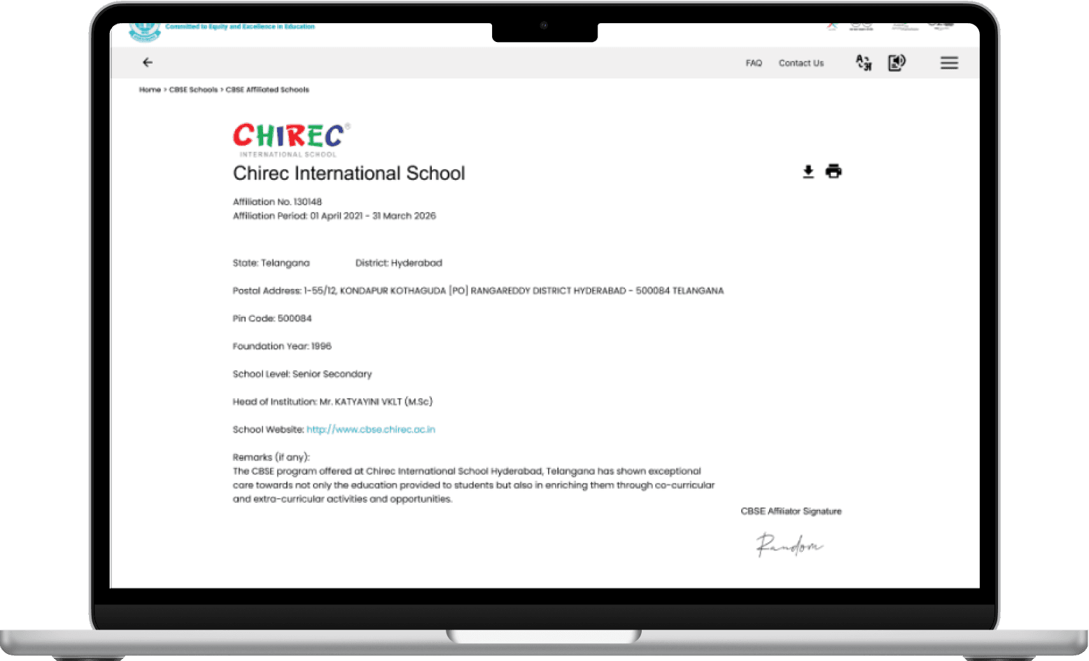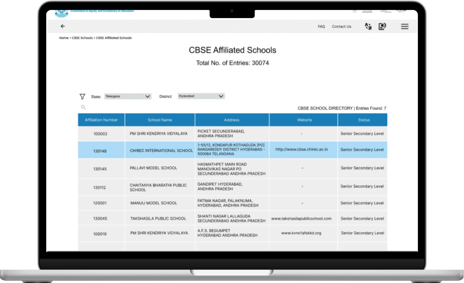 Search for CBSE affiliated schools in the Telangana State within the Hyderabad district. View one school from the list of a senior secondary level for Admissions.