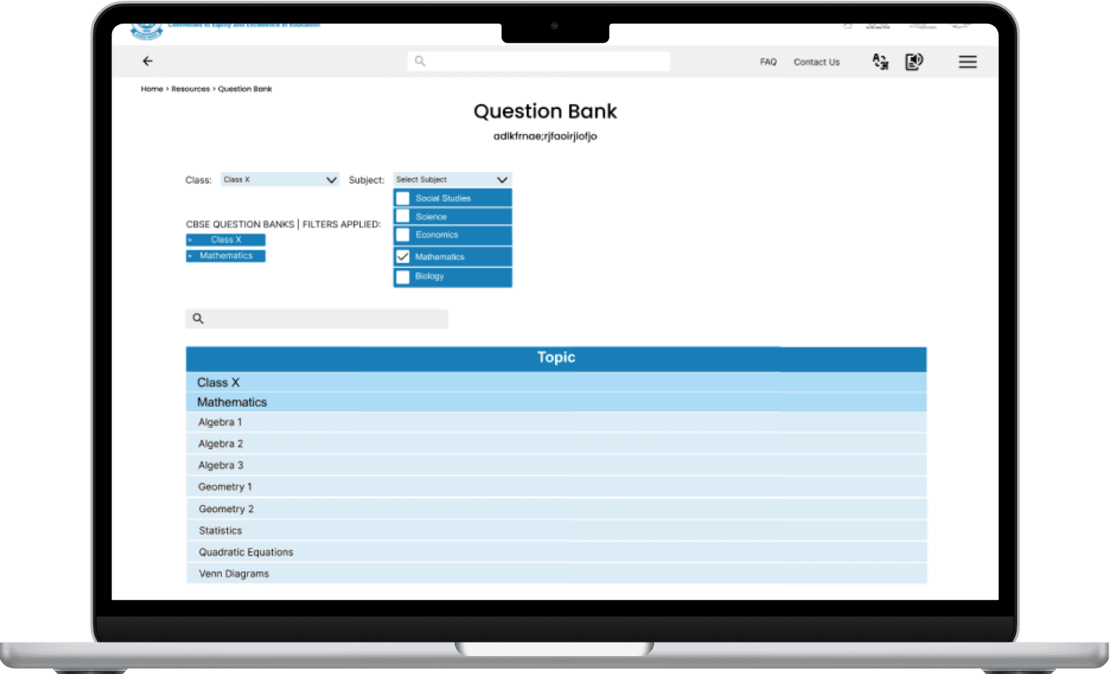 Search for a mathematics question bank for 10th grade practice.
