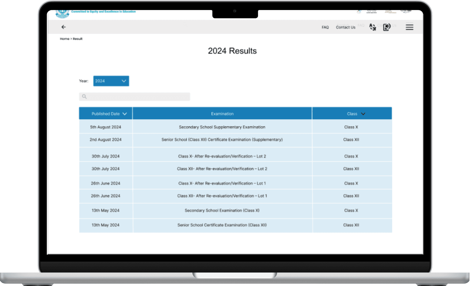 Search for class 12 results.