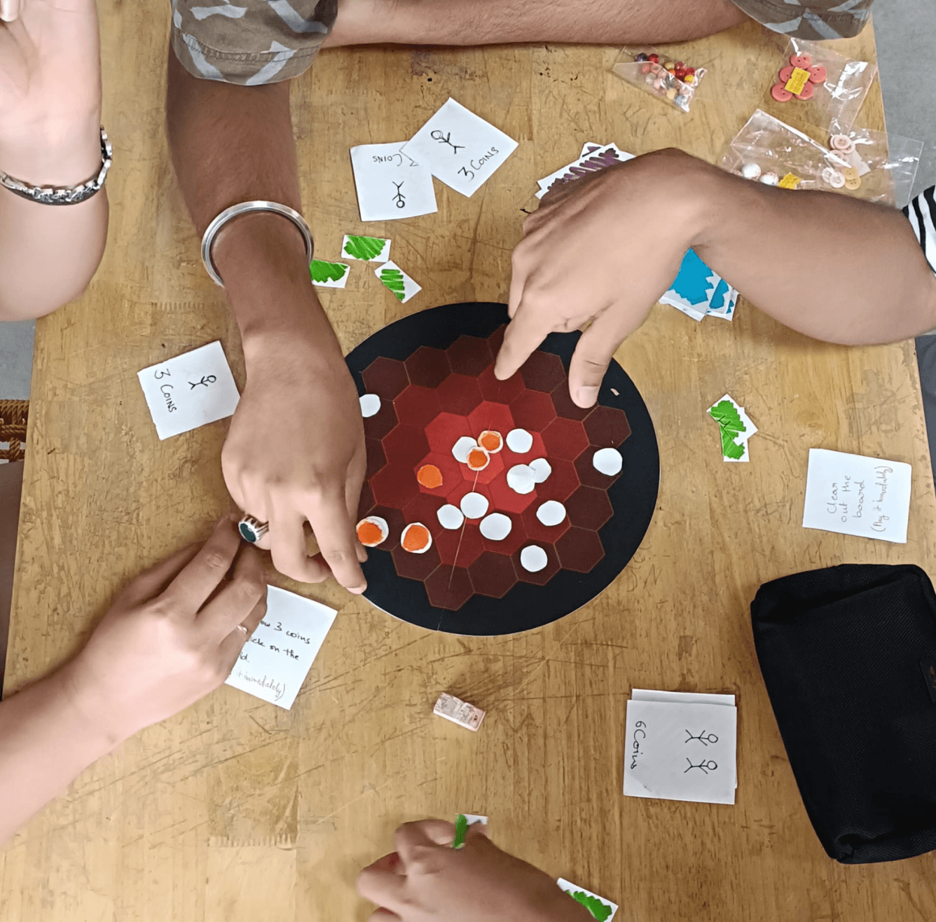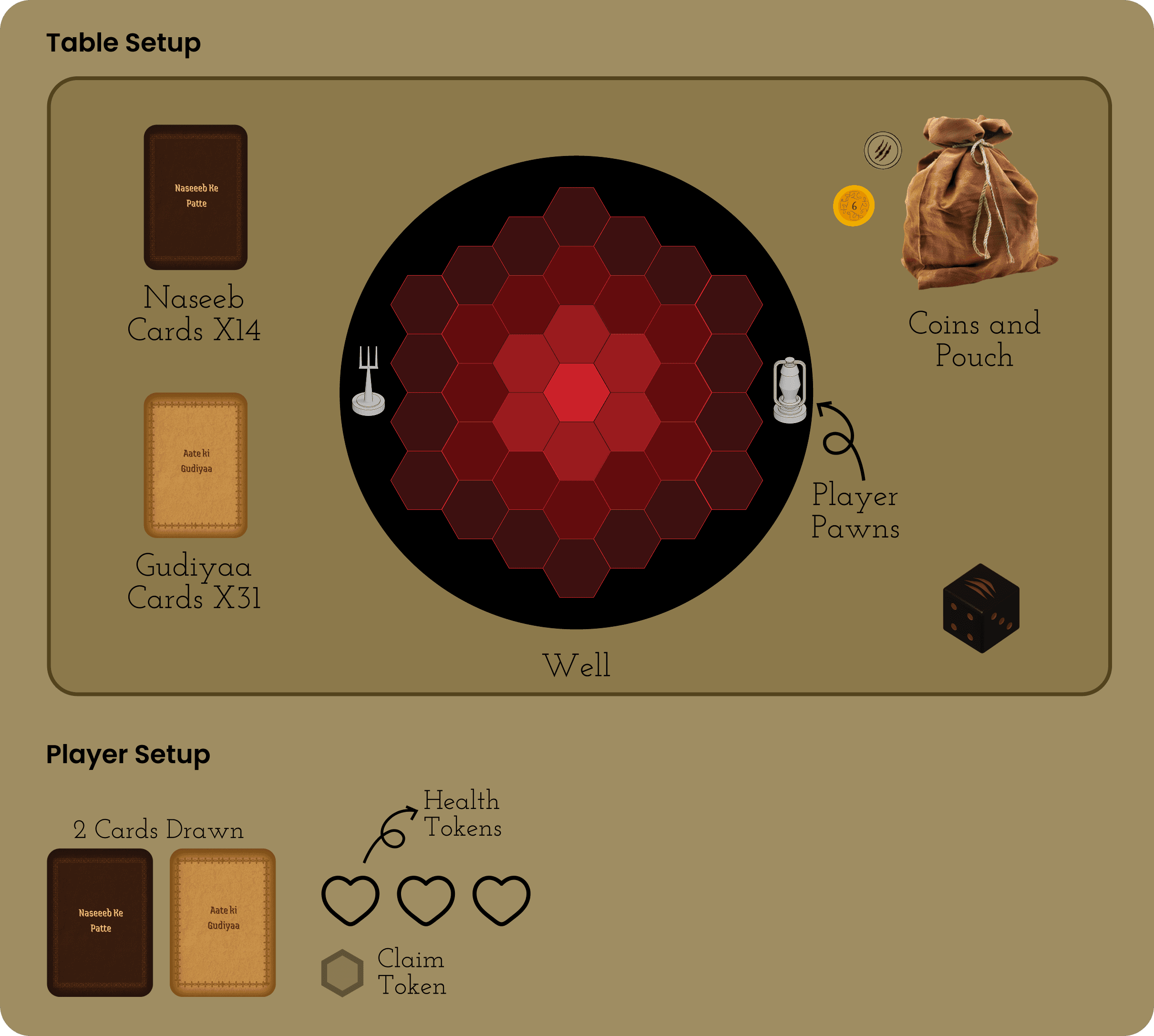 As the villagers of Tumbbad, you now are in the race for the riches. Each turn, you gather resources, carefully planning your next move. Will you play it safe, or will greed drive you into the depths of the well?